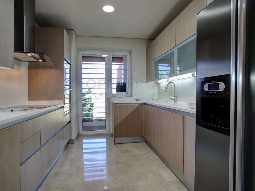 La sala / comedor es espacioso, con pisos de mármol que conducen a través de las ventanas diseñadas por Shuco a una amplia terraza semicubierta. Baño de invitados. Cocina moderna con electrodomésticos Smeg / Siemens y lavadero independiente con lavadora y secadora separadas
