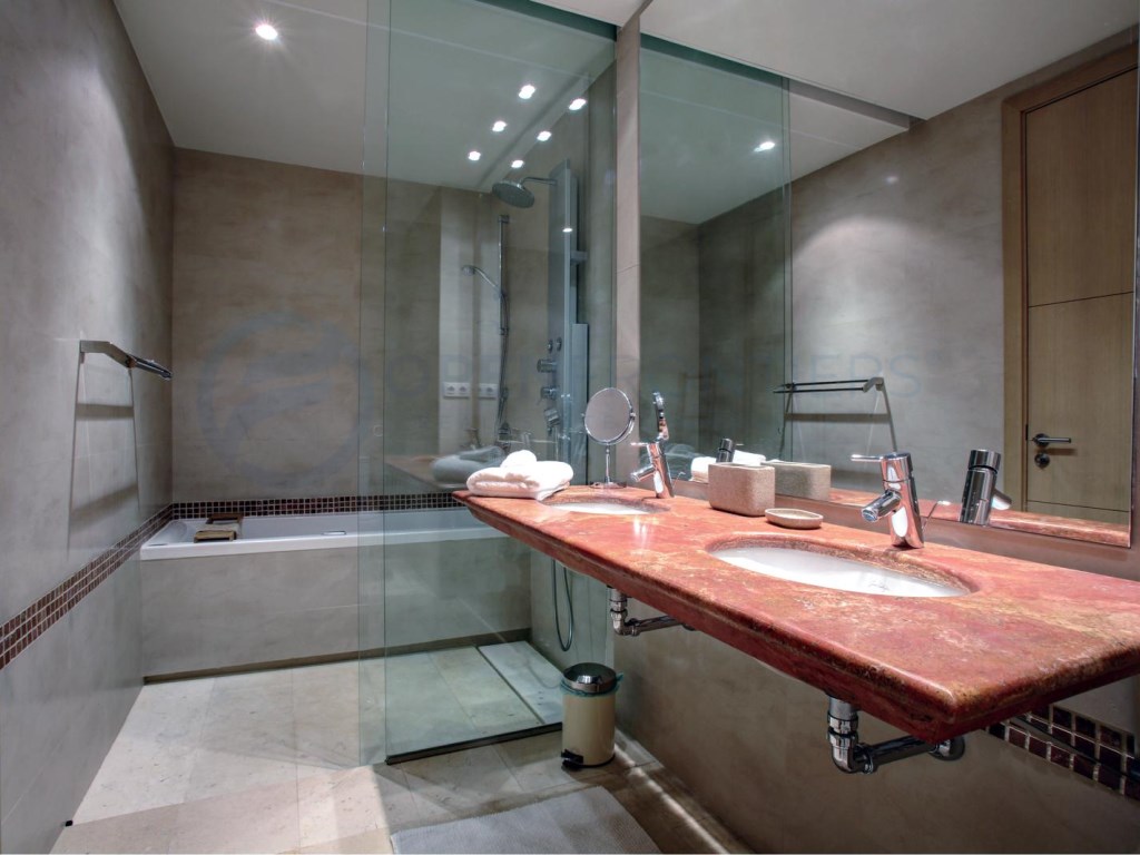 Dos dormitorios con baños en suite, dormitorio principal con bañera jacuzzi y ducha de hidromasaje . Suelo radiante en los baños, aire acondicionado frío / calor. Terraza privada en el segundo dormitorio con vistas al campo.