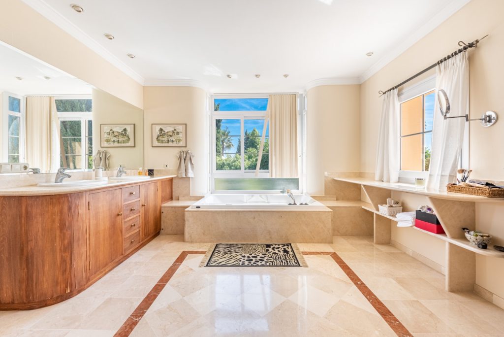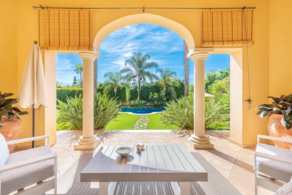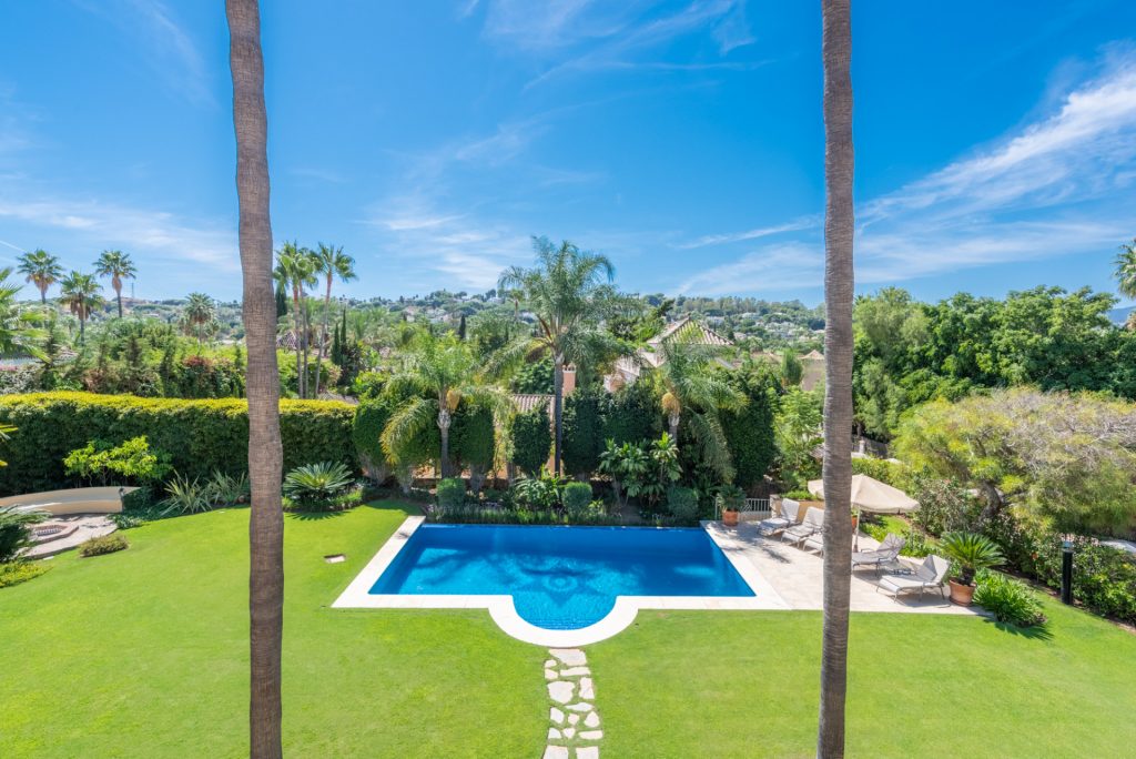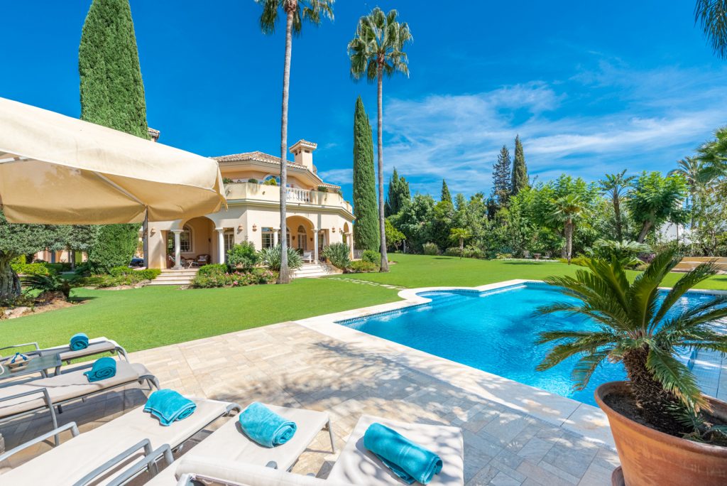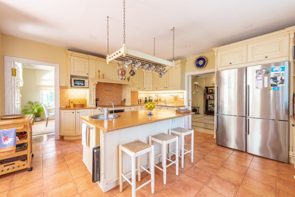 Mansión tradicional y atemporal con toques modernos de estilo escandinavo. 5 dormitorios 4 salas de baños Esta encantadora Villa es ideal como residencia habitual o para disfrutar de unas vacaciones inolvidables en cualquier época del año. Nada más a entrar que nos encuéntranos en el amplio recibidor con vistas directas al salón comedor y al impresionante jardín.