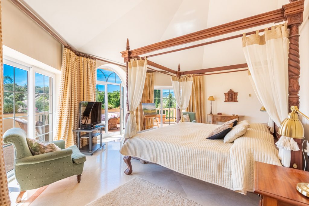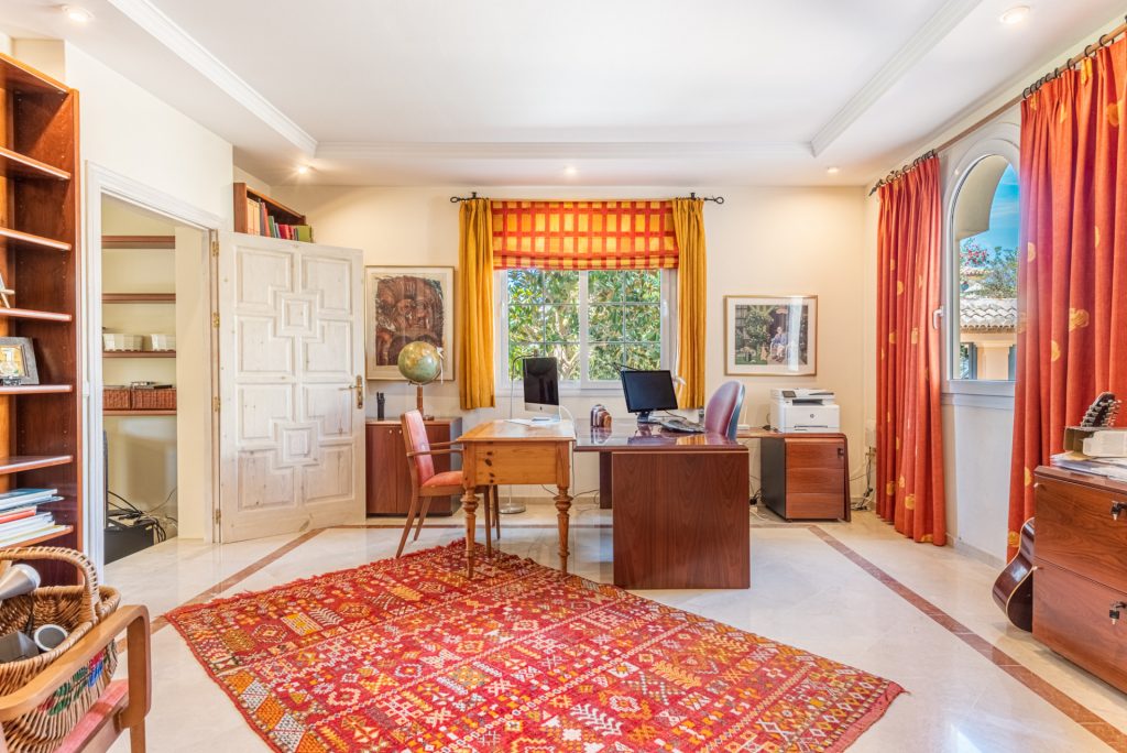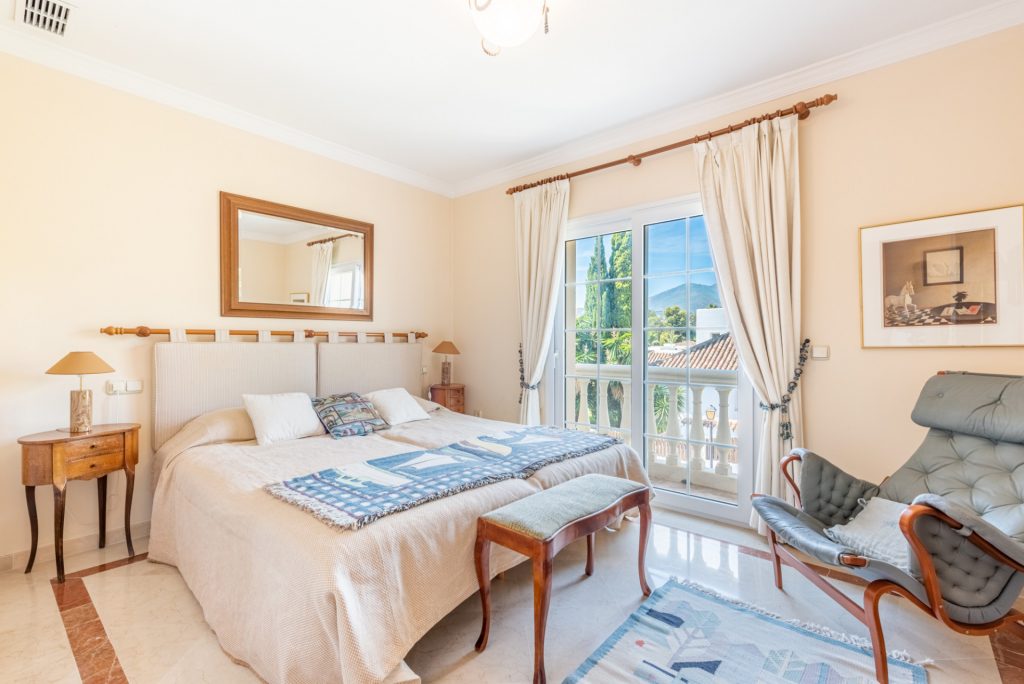 La planta superior cuenta con 4 dormitorios, 3 amplios dormitorios dobles y 2 baños familiares, 1 baño de invitados el dormitorio principal con una gran terraza con vistas una gran terraza con impresionantes vistas al Valle del Golf , al jardín y a la piscina, un vestidor y un luminoso baño en suite con acceso al dormitorio más encantador de la vivienda en la misma torre.